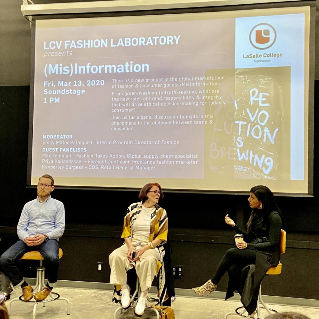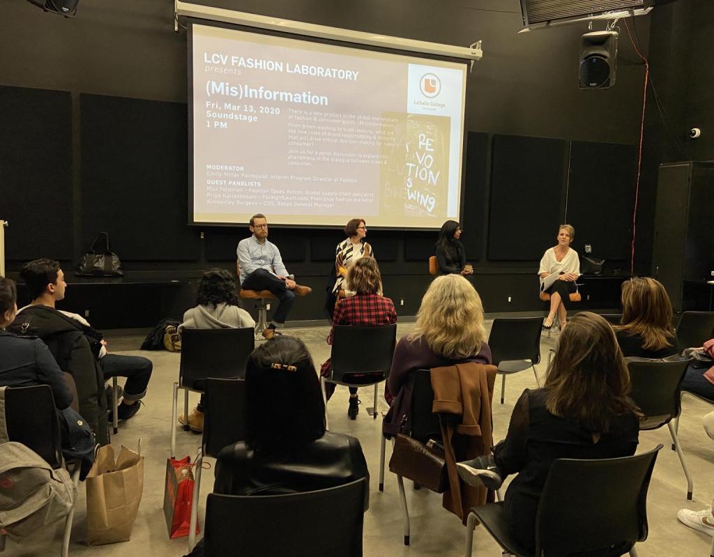 Given the growing situation with COVID-19 we were expecting very few guests. In a normal setting, we could have had standing room only, but we did fill most of the chairs. There were more people than we thought and they were very engaged with the topic. My classmates and I asked questions, as well as a few audience members. This showed us that we picked a topic that was interesting and relatable. We live in a time when people want more from clothing brands. This panel allowed us to get an inside perspective and see a bigger picture of how consumers can ask for what they want and how brands can give it to them.