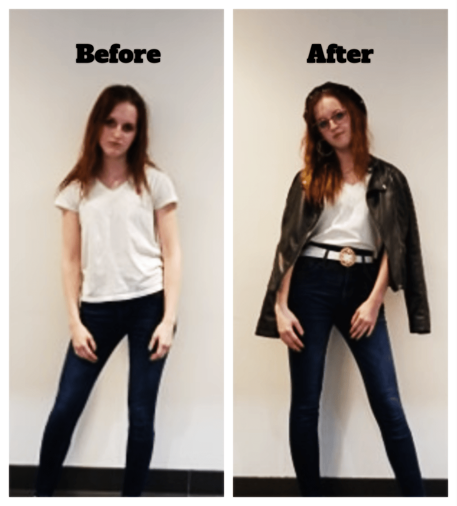 What I mean by “Freshen Up” is to implement little touches to clean up your look. Rolling up your sleeves or tucking in your shirt can help make your outfit look more put together. It creates a crisp, clean feeling making you appear more professional. If you’re throwing on a T-shirt and jeans, try tucking in the shirt and adding a belt for an easy update.