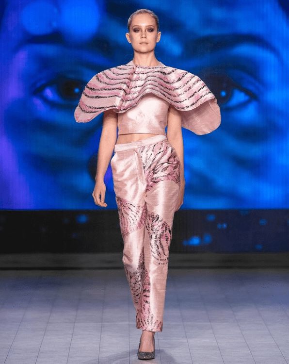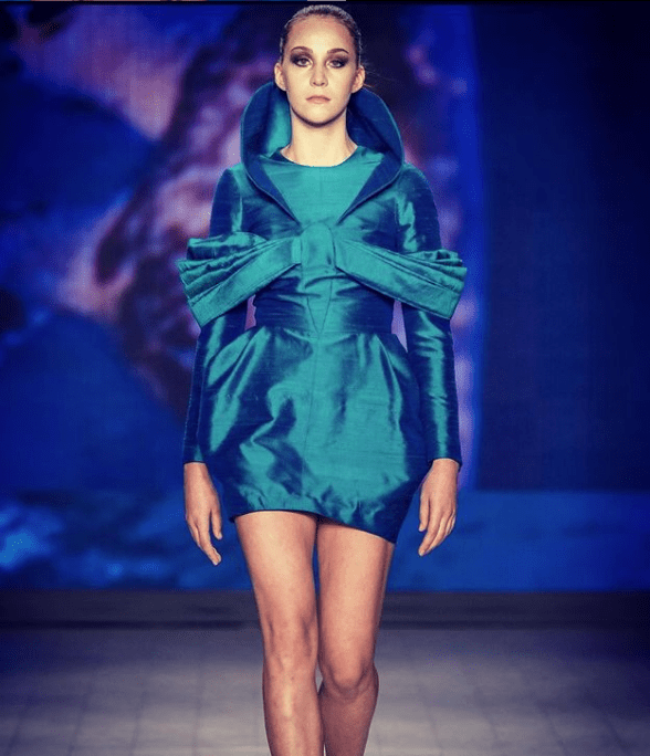 The next day in Julia’s class, they told me I was in, and I was so over the moon, it took a day, maybe not even, and already I had the mood board of designs, and LaSalle was great in letting us decorate a room for our designs for fashion week it was great. Everyone had different concept ideas and mood boards, so many designs. It was amazing we were all up so early and went to bed and woke up at crazy hours; now, looking at my drawings, they are amazing, but how was I going to make them? I had no idea but it took lots of trial and error until I got the shapes right; I didn’t sleep much or eat or workout often. Still, it was so much learning. I feel like if you’re studying and get the opportunity to present at fashion week, do it. It’s scary and frustrating, but once you’re sitting there and do the fitting and see your designs and name come out on the runway, and there are people from the fashion industry, you get to see their reactions, and it’s worth everything. Even though it lasts like two minutes all for those three months of grinding but those two minutes are so worth it.