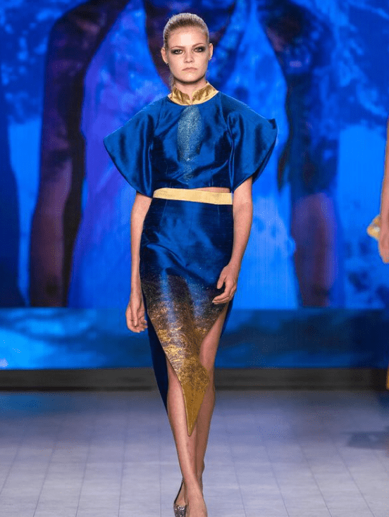 No one knows this because it’s crazy, but this is my process of fashion. I remember entering the library. I looked at the computer, and a screensaver turns on of a fish tank, and I thought water, life and my mind just went like water, life, organic fibres, harming the world, animals are beautiful, etc. I always feel drawn to marine life and colour, and then my brain was filled with crazy ideas. I grabbed my iPad and started sketching. I finished all my sketches in four hours and did that collection, and showed Nargas, and she said its perfect. Sometimes feel like these moments are meant to be, and you just enter a zone where your mind just goes, you don’t know what’s happening, but you do. Long story short, I had to get fabric samples, which I didn’t have because I just designed the thing that day; I ran like crazy to Dress Sew, did everything, and I was the last person to turn everything in, and everyone else was so organized. But I knew this was it, and it was my vision I wanted to present.